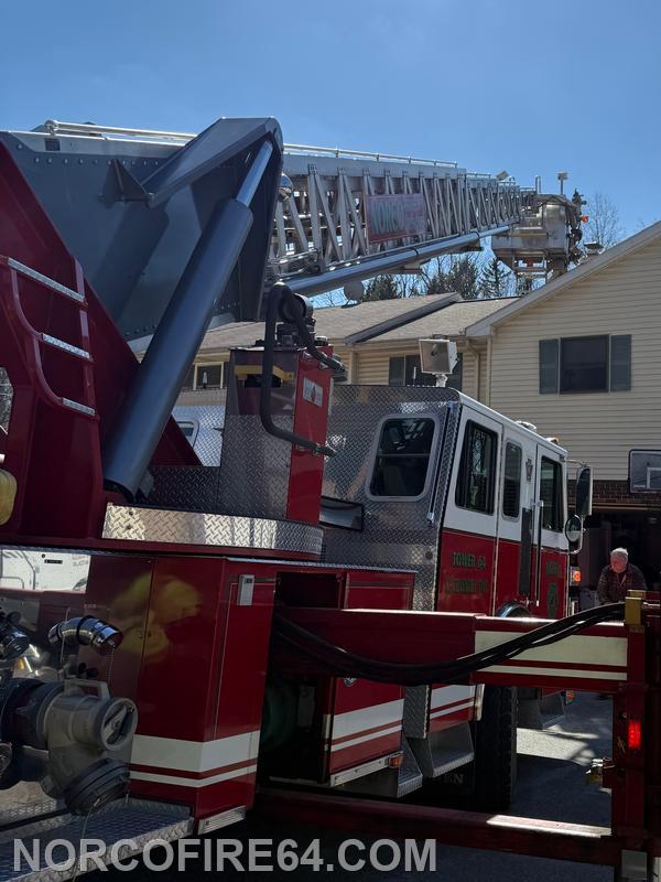 Tower 64, a 1994 Sutphen Tower Ladder with a 96-foot reach, has been serving the residents of North Coventry Township and its surrounding communities for over 31 years. It features a 300-gallon tank and a 1500-gallon-per-minute pump.