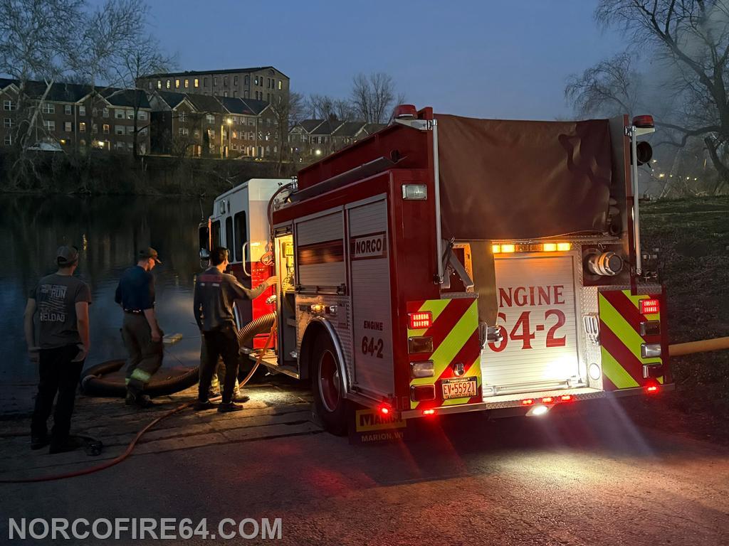 | On Monday night, 12 of your Norco volunteers attended training. The evening began with crews setting up our tent for our annual Easter flower sale. Once the tent was set up, our members traveled to the Schuylkill River boat launch for apparatus training, including pumping, drafting, and supplying master steams on Tower 64 with Engine 64-2. Additionally, crews responded to two emergencies during the evening.